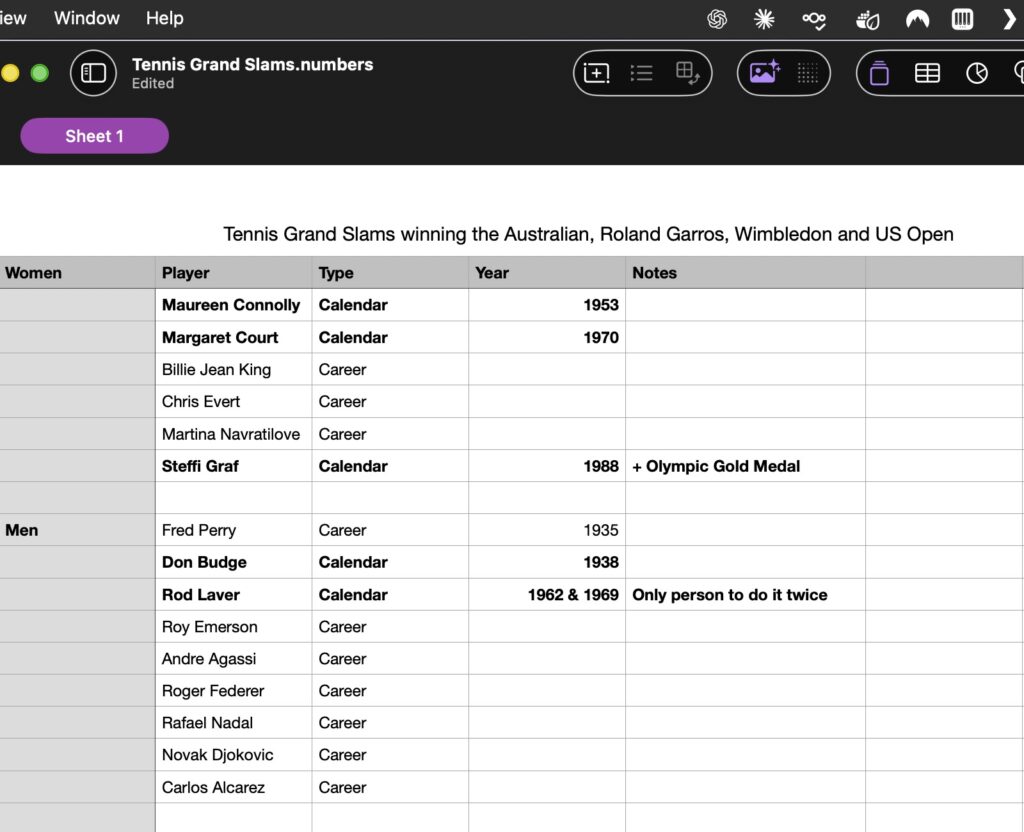 Grand Slams in Tennis